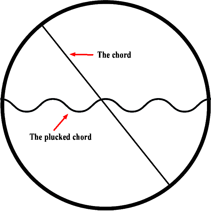 Now to end I want to strike a chord for the chord. The first is another straight line, but unlike the tangent, it does not bypass but cuts right through our circle connecting on the inside two points on the circumference. The second is the melodious sound made by plucking a few well-tuned cords of a musical string instrument. After all the circle has done for us, it is prepared to play music for us too.
