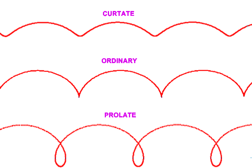 Yes, triangles were my top favorite for a while. However later, triangles slipped to third place below the second-place circle once I saw a bicycle wheel’s circle sporting a glowing flashlight bulb that traced a pattern as it passed me by one early evening at dusk. The wheel was a circle, but the bulb did not know that. It traced a wavy line that l later learned was a cycloid, an ordinary cycloid. The three simplest cycloids are the wavey curtate, the spikey or cuspy* ordinary, and the loopy prolate. [7] These are quite beautiful to the eye of this beholder; birthed by the circle but not circles themselves.